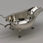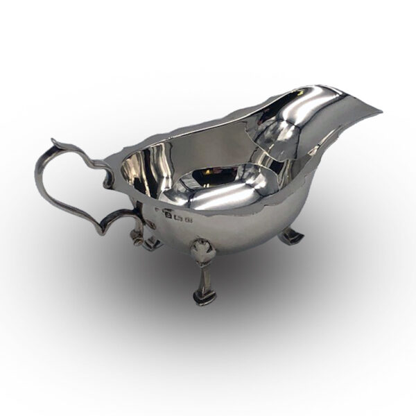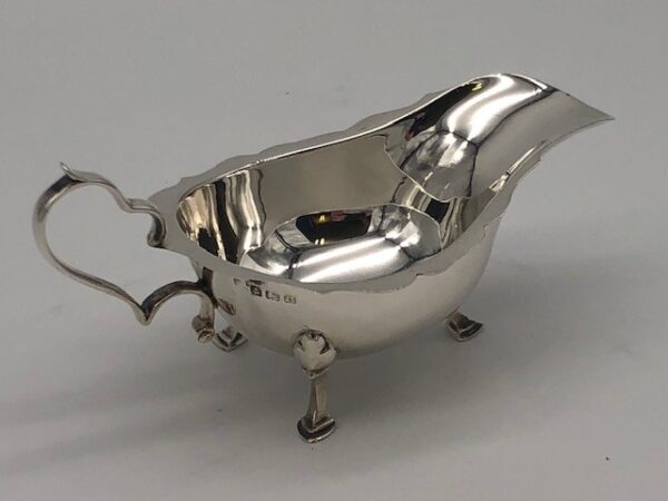 A beautiful and delicate Antique Silver sauce boat, on 3 hoof feet.